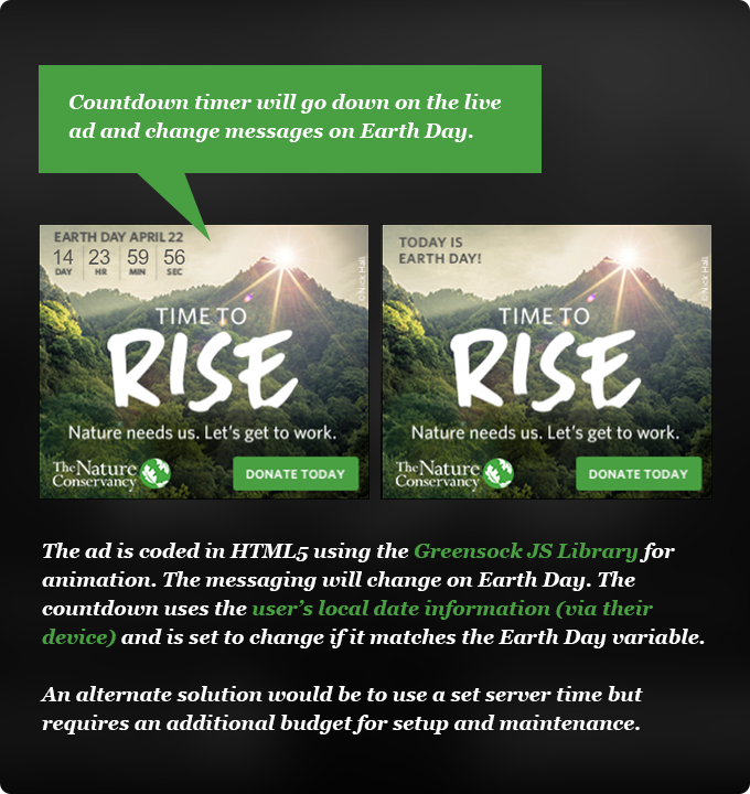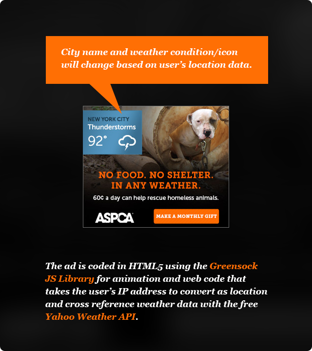 This is a javascript animated interactive HTML5 ad. The software used to create the assets and animation include Adobe Photoshop, Adobe Edge Animate, and a text editor for code.